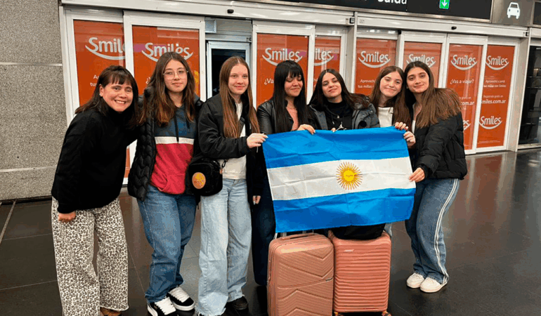 El grupo argentino se completa con una profesora y dos alumnas de la localidad de Plátanos, y dos estudiantes más de Cerrito. Todas serán recibidas en el Colegio Instituto Santa María.