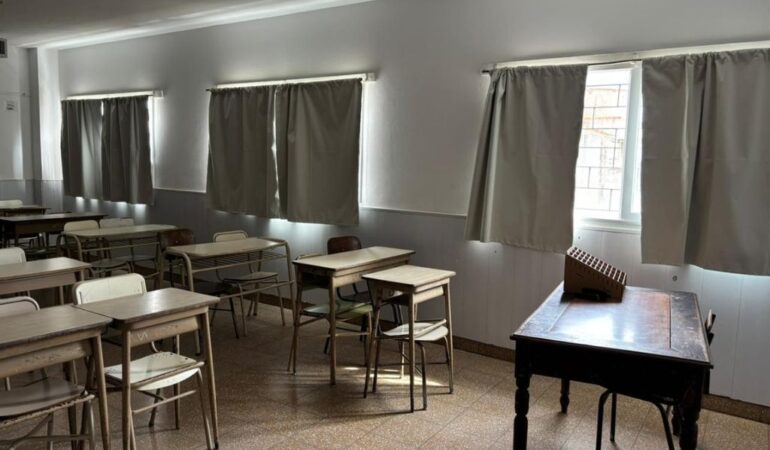 En el Colegio se colocaron rejas en todas las ventanas del primer piso, una intervención que permite mantener los espacios ventilados sin descuidar la seguridad de los chicos. Además, se compraron cortinas black out para la totalidad de los salones y algunas oficinas, mejorando la calidad lumínica en cada espacio áulico.