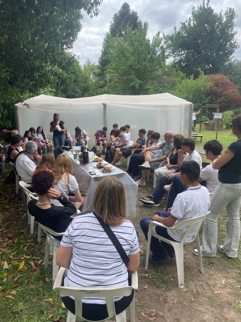A cargo de las profesoras Karina Punte y Romina Valli, las familias, y especialmente los abuelos, fueron invitados a la Quinta de Hermanas. La jornada, que incluyó buen clima, mates y facturas, tuvo un emotivo intercambio de regalos: los abuelos recibieron plantines, semillas y una dedicatoria escrita por sus nietos, mientras que ellos también dejaron un mensaje para los alumnos.